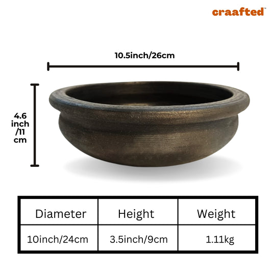 4 Liter Handcrafted Clay Pan/Pot/Kadai/Earthen/Mud/Mitti Handi - Colour: BlackRegular price Rs. 899.00Regular priceUnit price / perRs. 1,699.00Sale price Rs. 899.00Sale