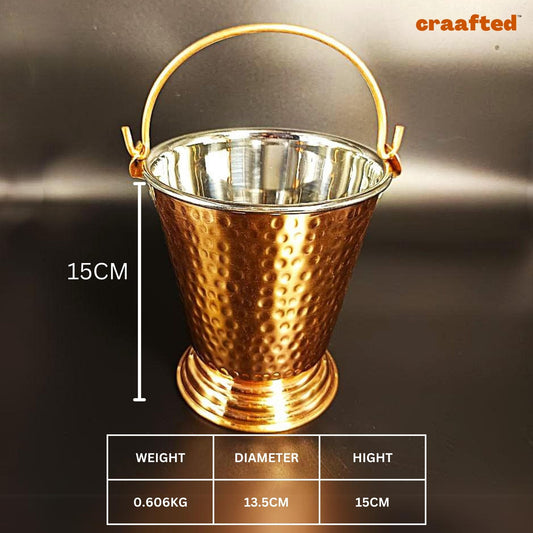 Pure Copper Bucket / Balti with Steel Inside, Serveware & Tableware | 500 ML