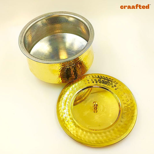1 Liter Pure Brass Hammered Kadai / Kadhai with Tin Coating Inner Side | Kalai | with Lid.