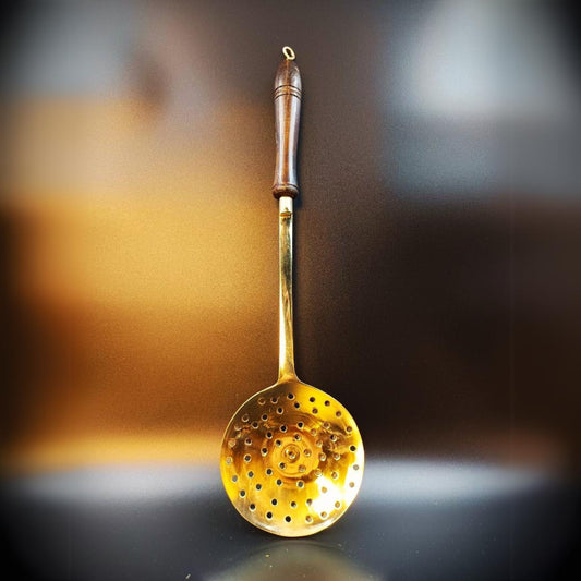 Set of 3 Pure Brass Ladles with Wooden Handle