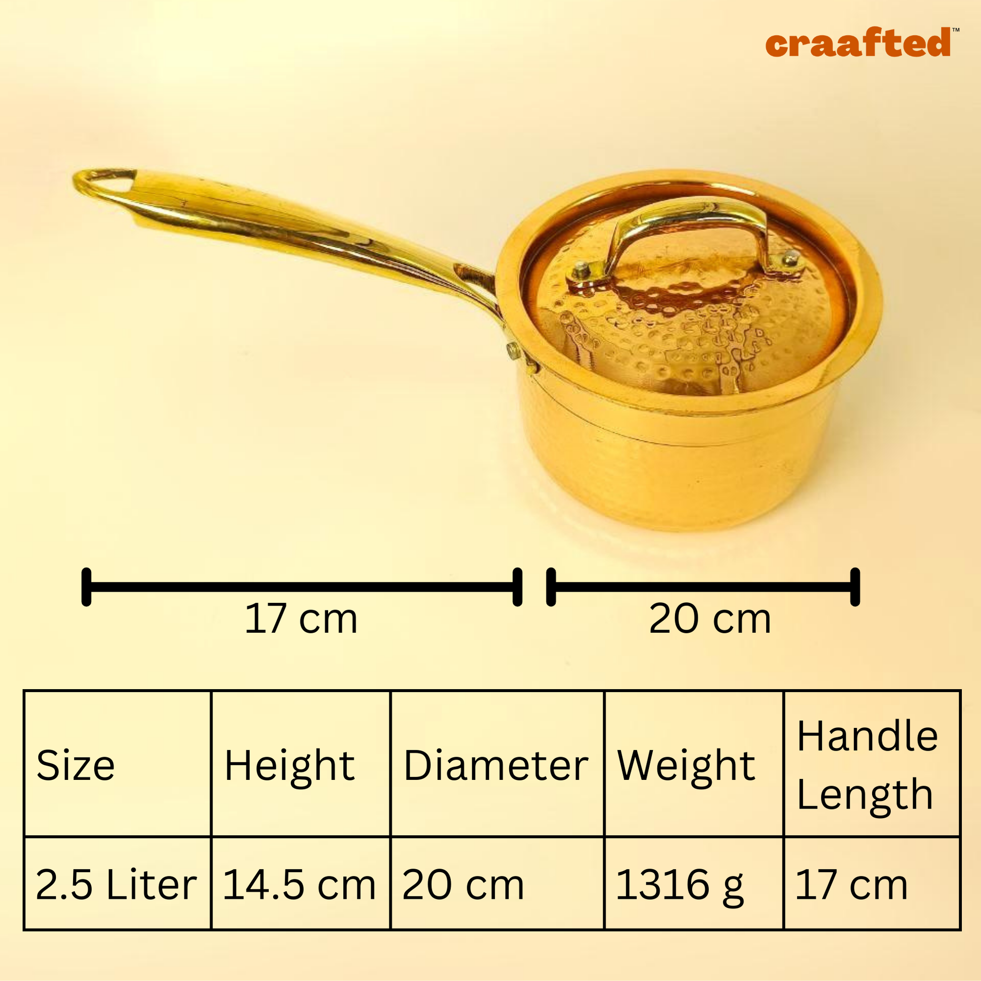 2.5 liter Pure Copper Saucepan Hammered with Tin Coating Inner Side | Kalai | with Lid.